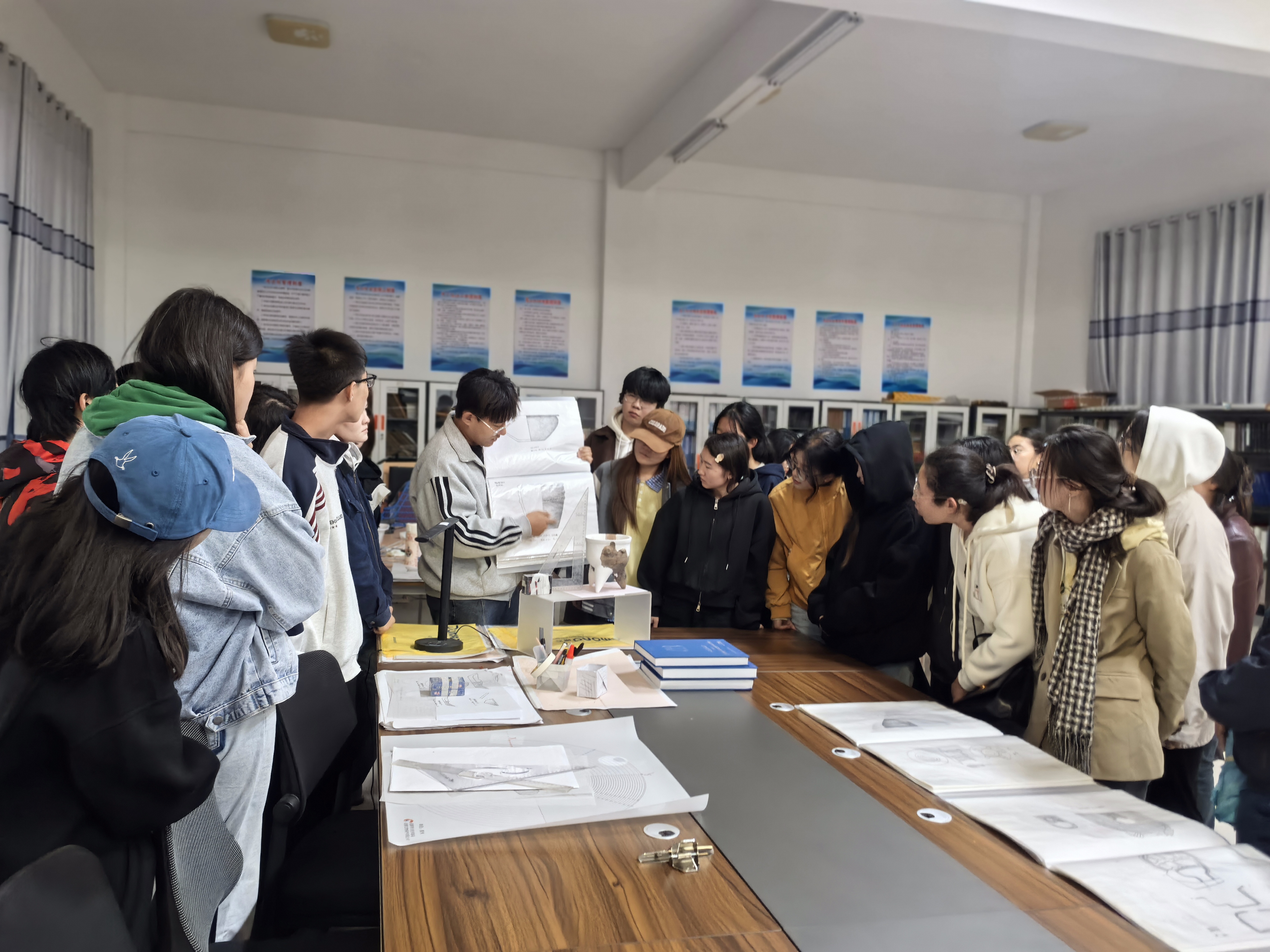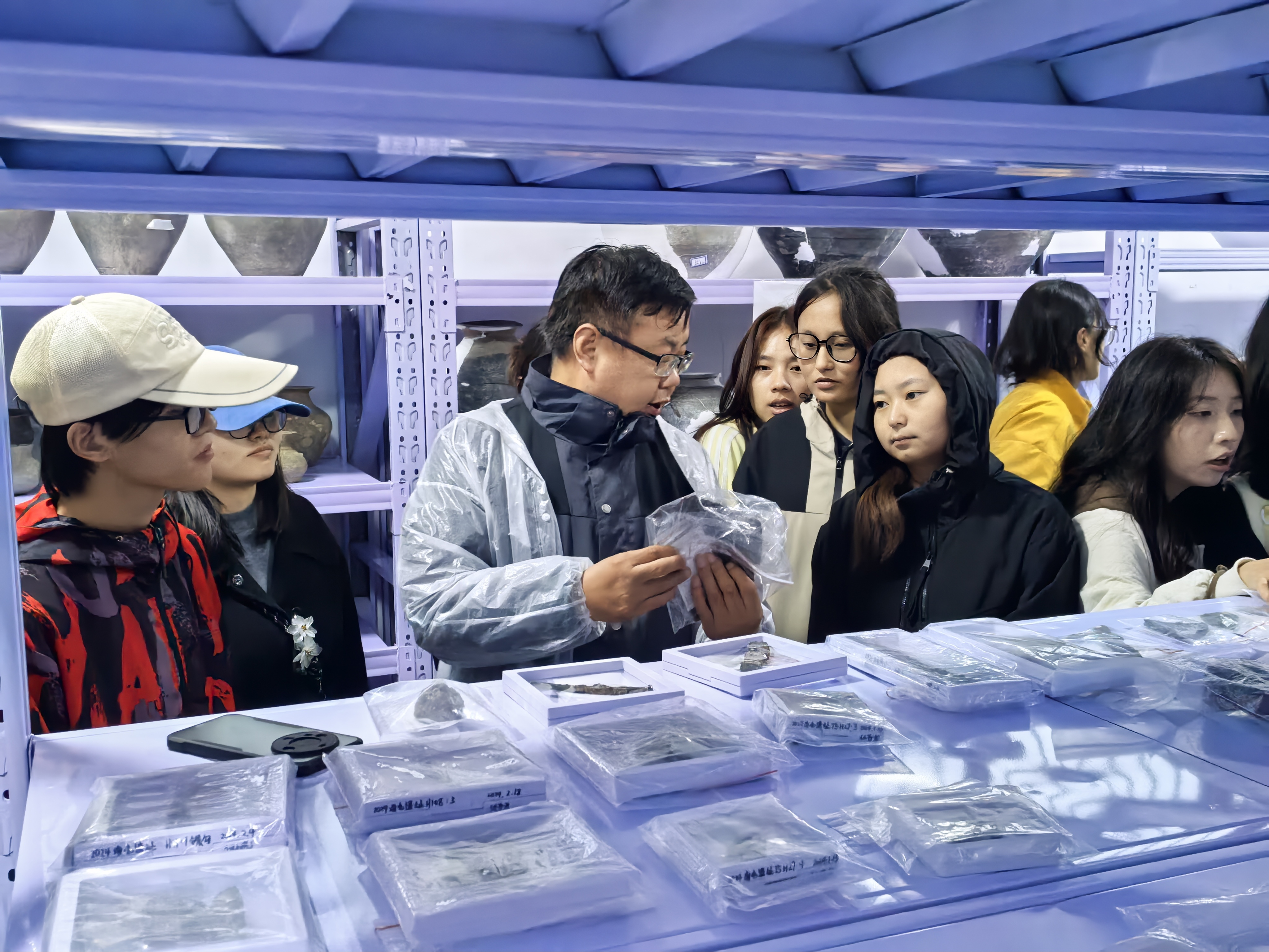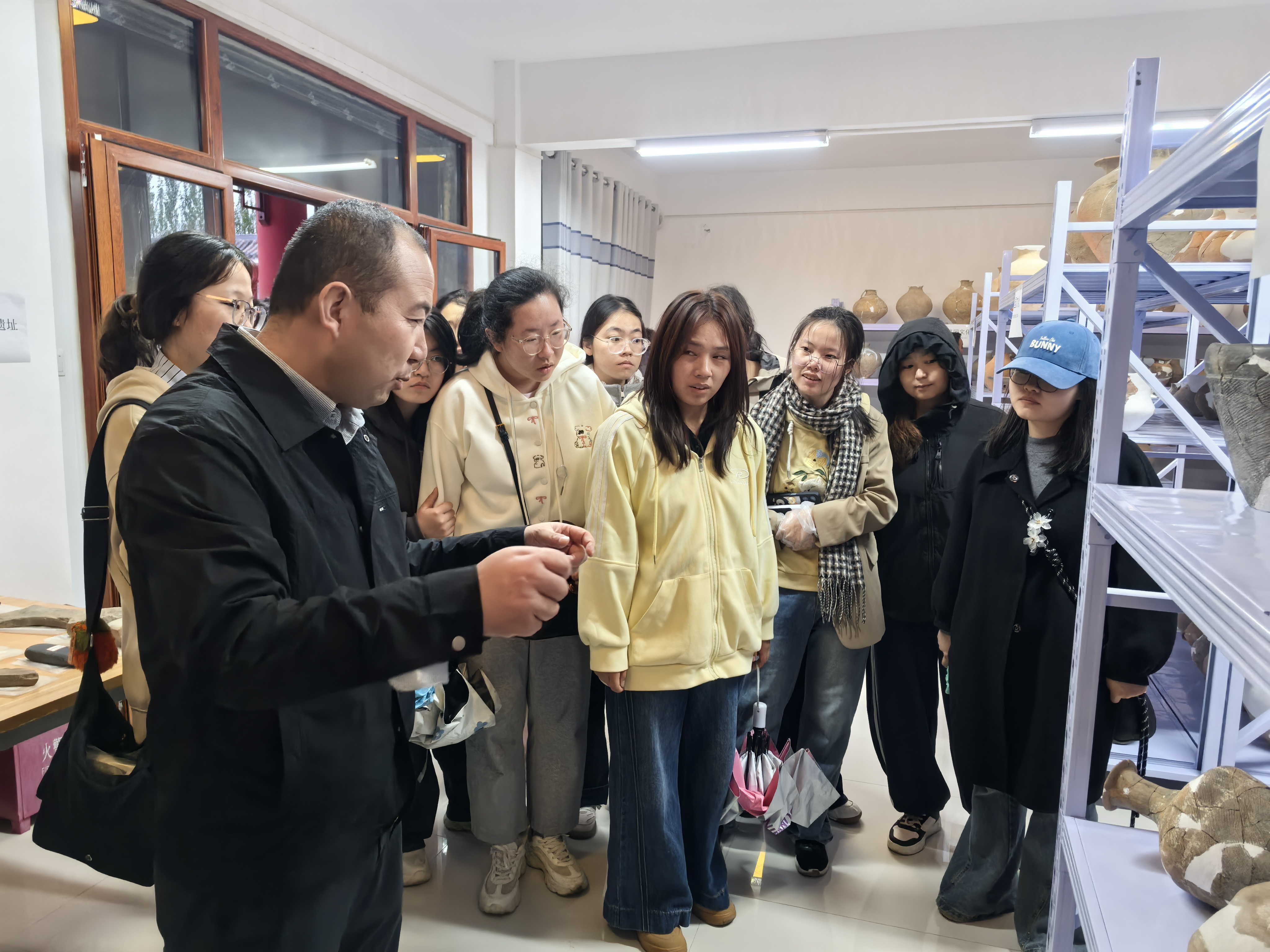 文物考古现场是历史学专业实践的“活课堂”。在姚河塬考古队工作站、宁夏文物考古研究所固原工作站及原州区善家堡春秋战国墓地发掘工地,考古专业人员为同学们系统讲解考古工作流程、文物辨识方法、遗产保护利用。同学们近距离观察出土的陶器、青铜器等珍贵文物,直观感受考古工作对还原历史真相,揭示中华文明多元一体格局演进的重要意义。