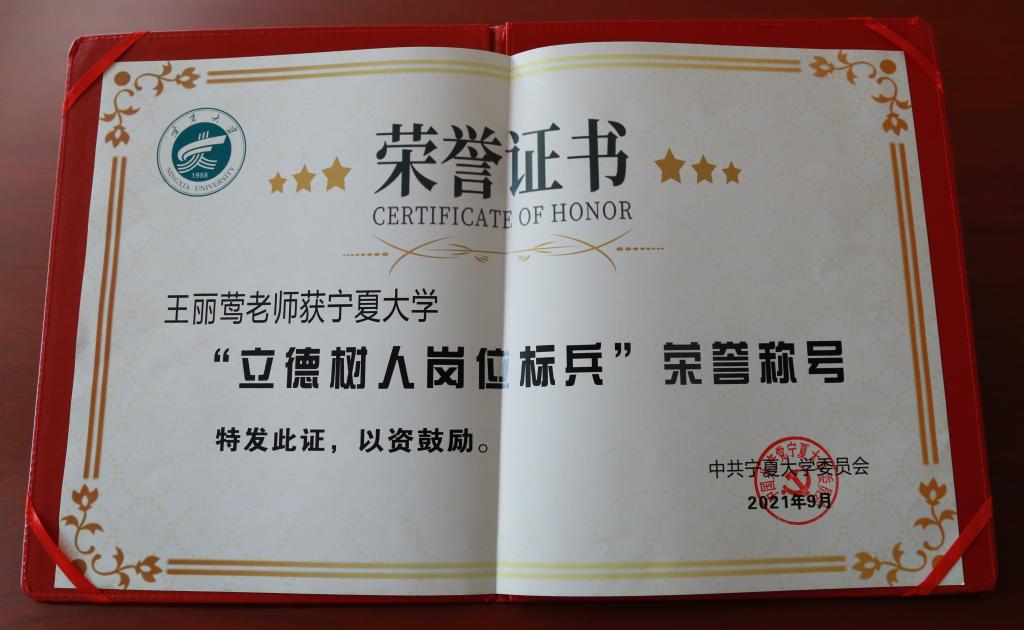 “立德树人岗位标兵” 荣誉。