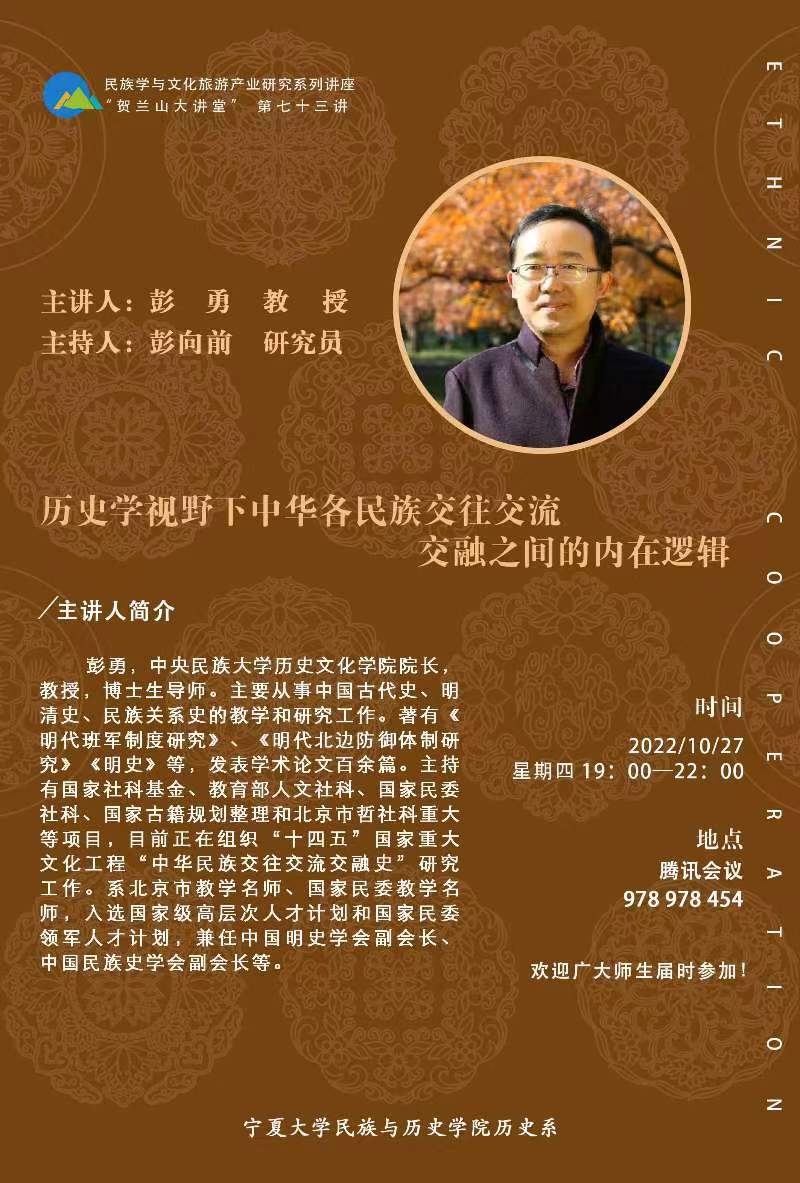 民族学与文化旅游产业研究系列讲座“贺兰山大讲堂”(第七十三讲)