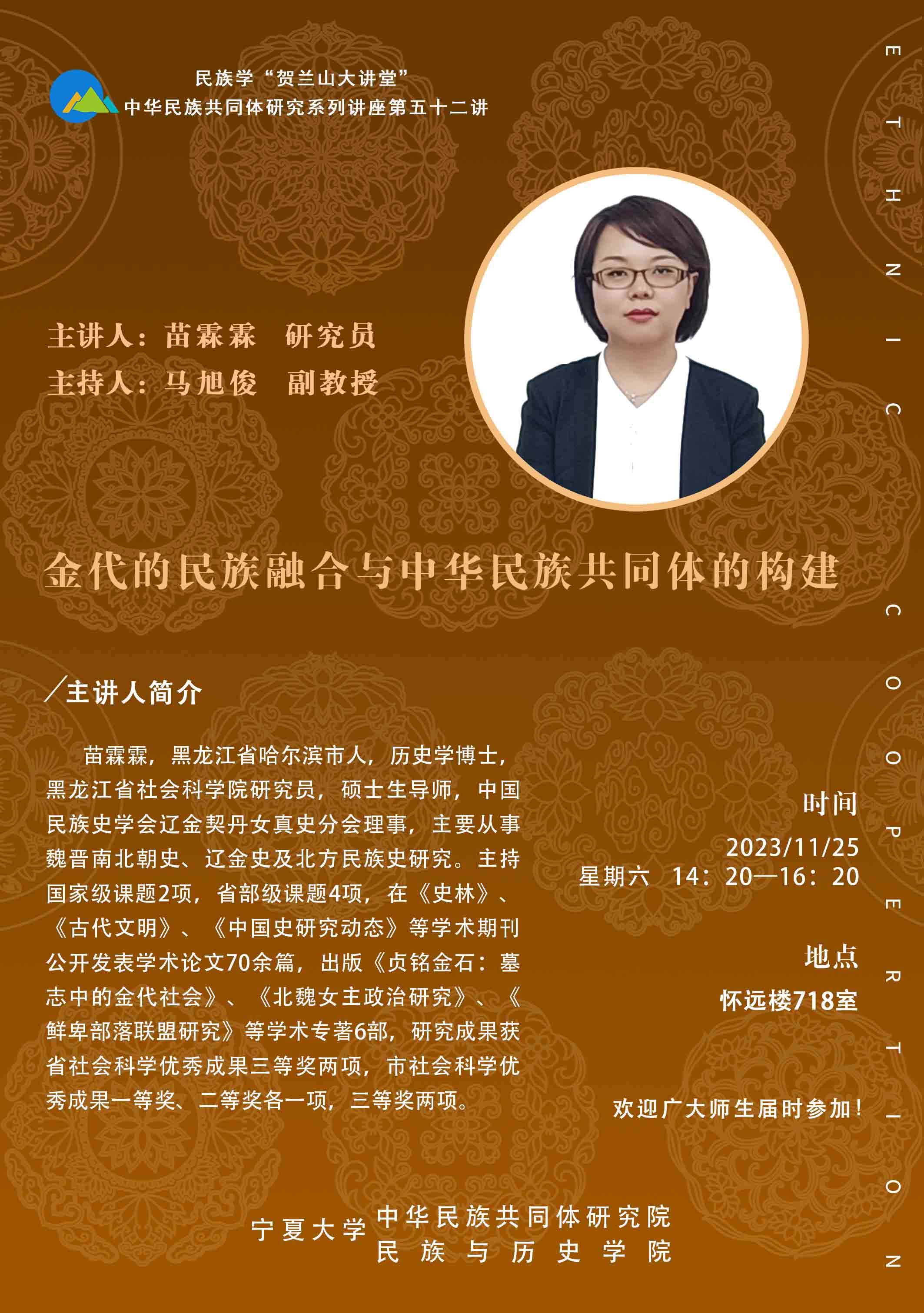 苗霖霖,黑龙江省哈尔滨市人,历史学博士,黑龙江省社会科学院研究员,硕士生导师,中国民族史学会辽金契丹女真史分会理事,主要从事魏晋南北朝史、辽金史及北方民族史研究。主持国家级课题2项,省部级课题4项,在《史林》《古代文明》《中国史研究动态》等学术期刊公开发表学术论文70余篇,出版《贞铭金石:墓志中的金代社会》《北魏女主政治研究》《鲜卑部落联盟研究》等学术专著6部,研究成果获省社会科学优秀成果三等奖两项,市社会科学优秀成果一等奖、二等奖各一项,三等奖两项。
