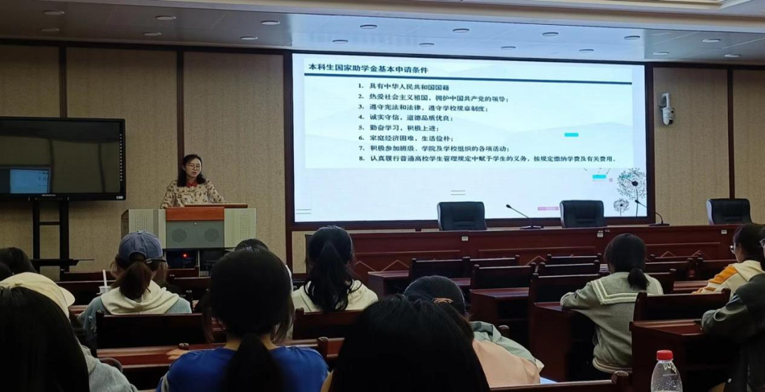 为进一步做好吃瓜大赛 资助育人工作,增强学生对国家资助政策的了解,切实做到精准资助,学院于9月19日在逸夫楼一楼报告厅开展大学生资助政策宣讲会,2022级全体本科生参与,辅导员雷小梅老师主持会议。